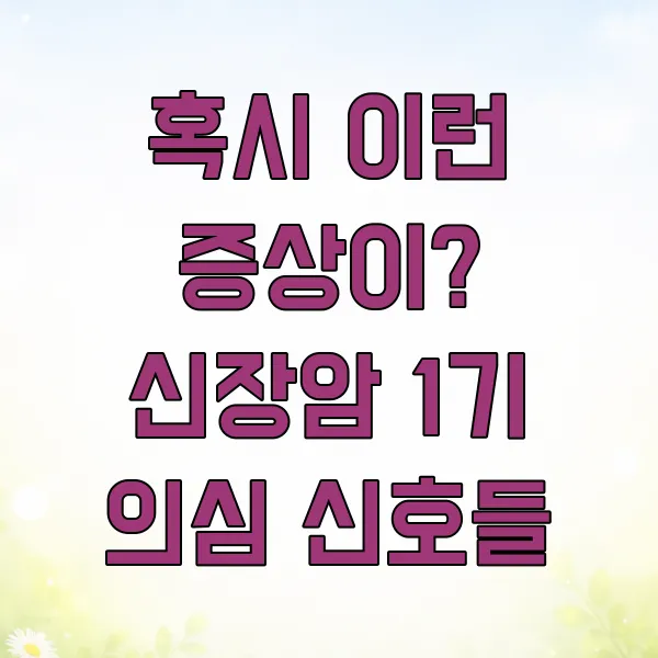 신장암 1기 증상은 뚜렷하지 않은 경우가 많아 조기 발견이 어렵습니다. 하지만 몇 가지 놓치기 쉬운 신호들을 미리 알아둔다면 건강을 지키는 데 큰 도움이 될 수 있어요. 혹시 모를 신장암 1기 증상에 대해 함께 자세히 살펴볼까요?